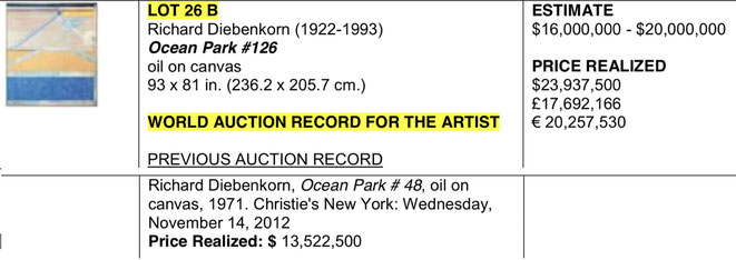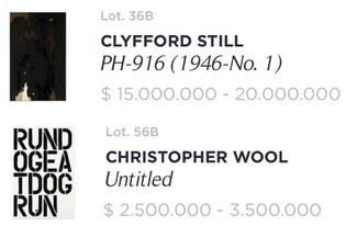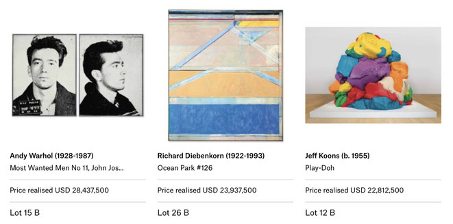 Jeff Koons’ Play-Doh (1994–2014) sold to Koons' dealer Larry Gagosian for $22.8 million (estimate was around $20million).