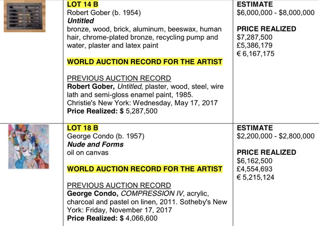 Robert Gober's Untitled (1993–94) sold to Andrew Fabricant of Richard Gray Gallery for $7.29 million.